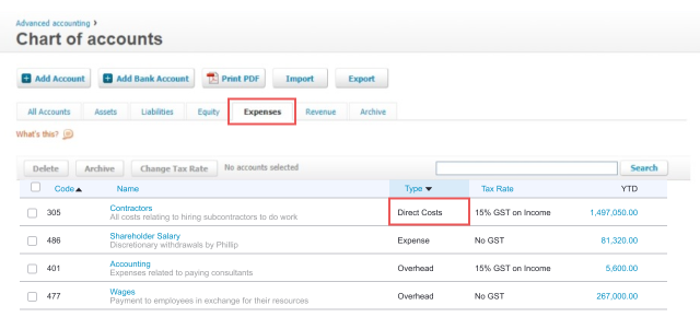 - All reconciled Cost of Sales to date including all Direct Cost accounts.