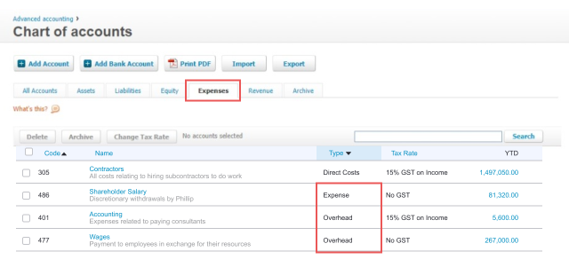 A: This is made up of all reconciled transactions from the period that are coded to the account types “Expense” and “Overhead”, per the chart of accounts setup in Xero.